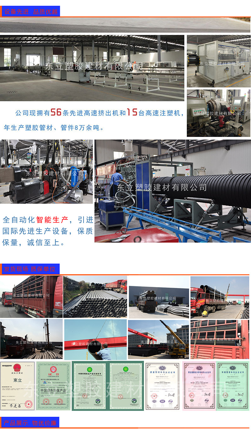 PE管采用目前世界上最先進(jìn)的技術(shù)生產(chǎn)制造的,具有高速擠出成型,熔融適度,自動定尺切割,PLC控制生產(chǎn)全過程的先進(jìn)性能。